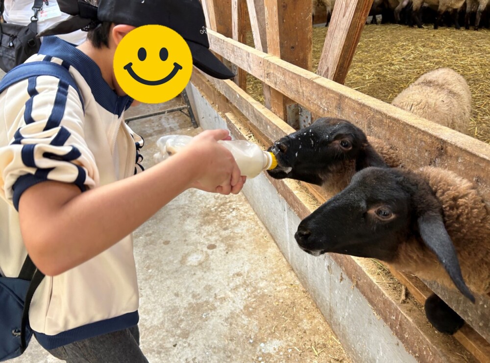 1日目は山中湖のかばバスに乗り、午後はふじさん牧場にて子羊とのふれあい体験ができました。事前学習で取り組んできたように優しく羊に触れたり、ミルクをあげたりしてふれあうことができました。