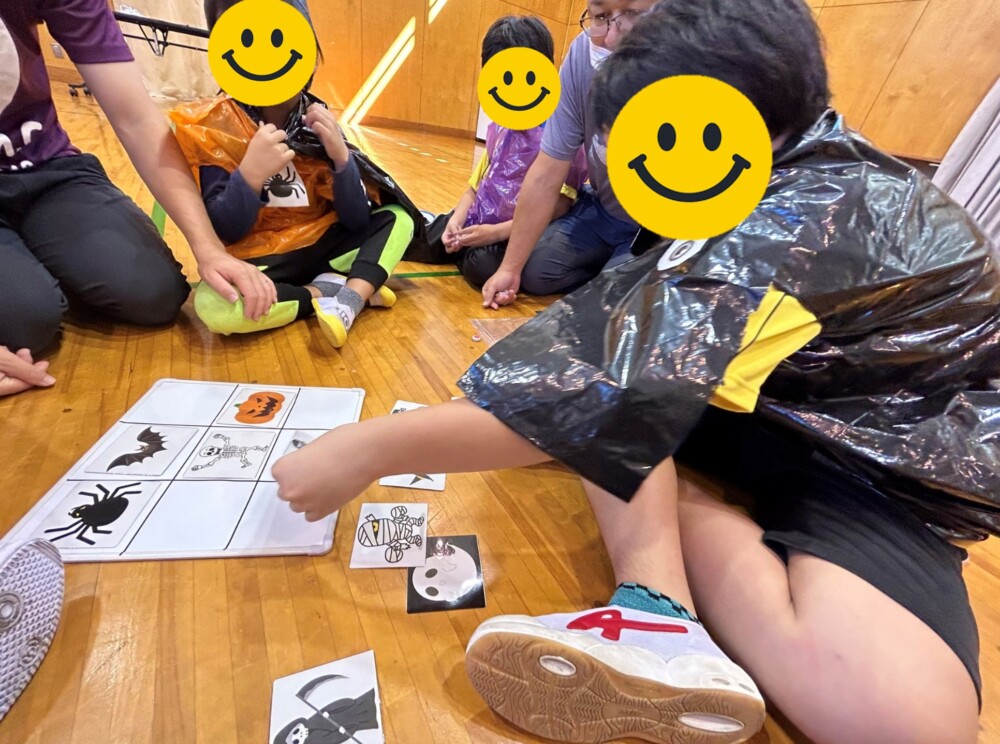 次に「魔女」や「ミイラ」など、ハロウィンにちなんだキャラクターの名前を英語で教えてもらい、その単語を使ってチーム対抗 BINGO 大会をしました。