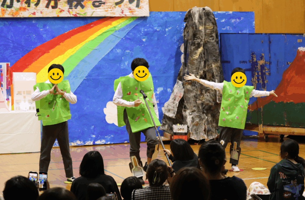 中学部の発表のタイトルは「おくにじまん~いとしいこのセカイ~」。1年生は生活単元学習、2・3年生は修学旅行で学習してきた山梨や東京の良いところを発表しました。