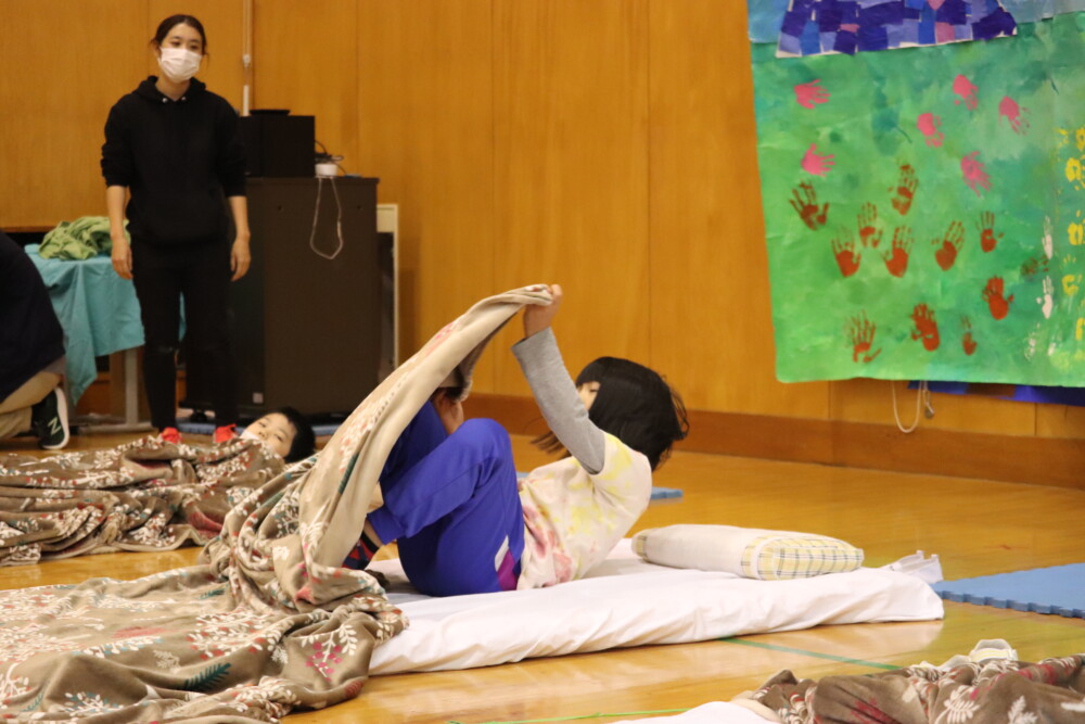 沢山練習した布団敷きを皆さんの前で披露しました。