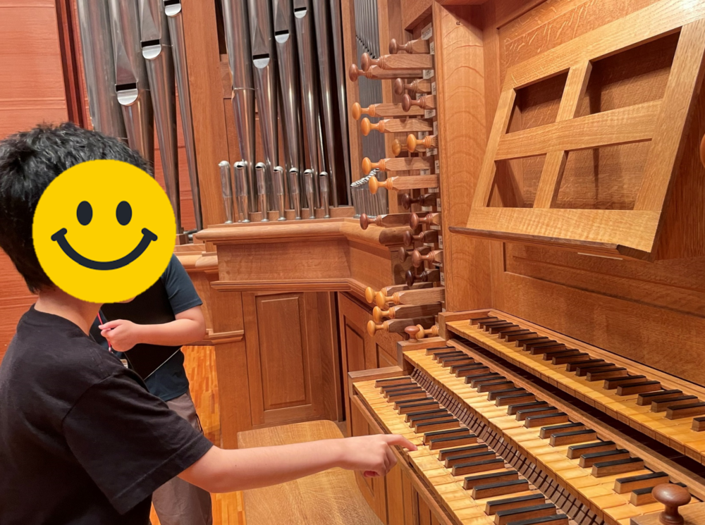 音の鳴る仕組みを学習したり、実際に1人ずつパイプオルガンを弾かせてもらったりと、とても貴重な体験をさせて頂きました。