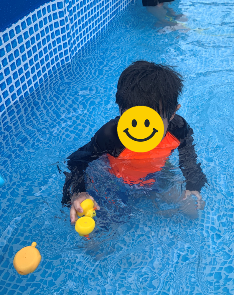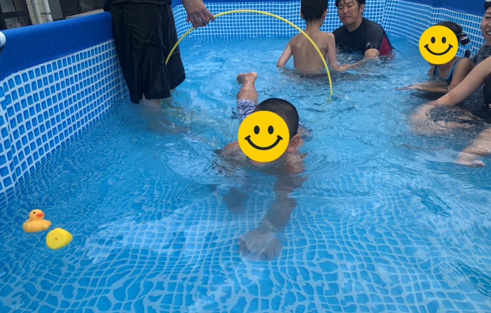 浮かんでいる玩具を手につかんだり、自分ができる泳ぎを披露したりと、みんな楽しそうな表情を見せてくれています。