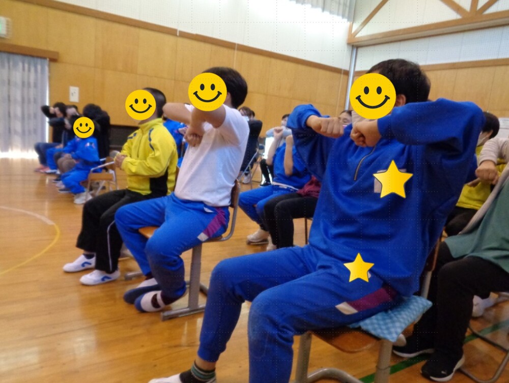 愉快なあそびうたに笑顔いっぱいの子どもたち。一緒に歌ったり、身体を動かして表現したりして全校で素敵な時間を過ごすことができました。
