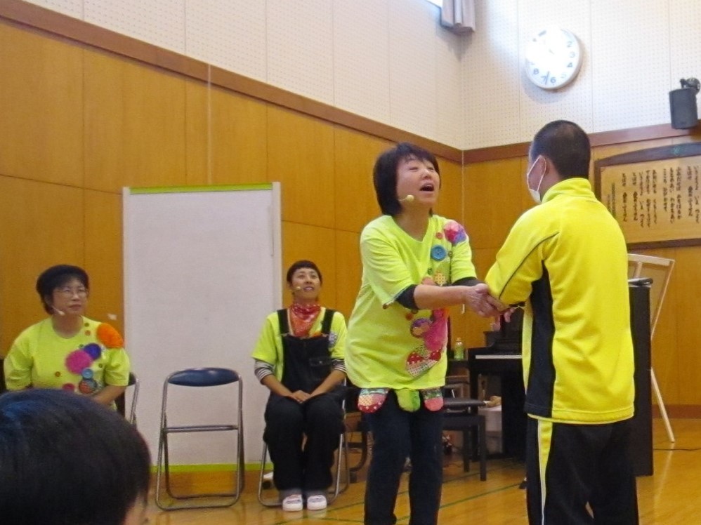 山梨県立わかば支援学校ふじかわ分校 > 活動の様子 > いきいき教育地域人材活用推進事業(全校) 2023年12月7日カテゴリー: 活動の様子 いきいき教育地域人材活用推進事業(全校) 11月21日(火)、南アルプス市のあそびうたユニット、カワクボメガネさんにコンサートをして頂きました。 愉快なあそびうたに笑顔いっぱいの子どもたち。一緒に歌ったり、身体を動かして表現したりして全校で素敵な時間を過ごすことができました。 カワクボメガネさん、素敵なコンサートをありがとうございました。